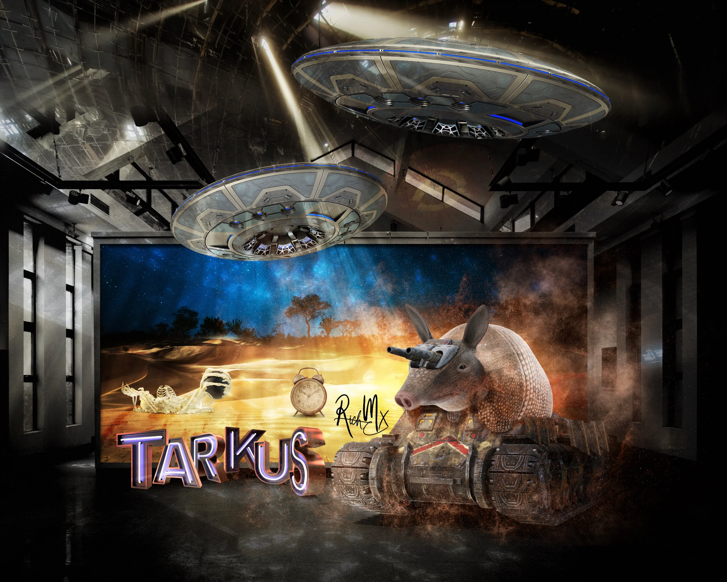 Inspired by the progressive rock band of the '70s, EMERSON, LAKE & PALMER was a fantastic band; they had a vinyl album called TARKUS, and its cover art narrates any story you can imagine. In Ricardo's artist’s story, the clock is ticking, and humankind runs out of time; we have already missed our goal of net zero by 2050.